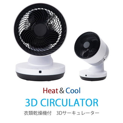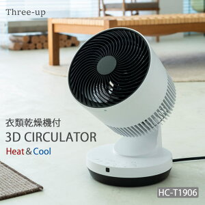 《three-up》スリーアップ 衣類乾燥機付3Dサーキュレーター「ヒート&クール」 扇風機 オフタイマー シンプル コンパクト 風量12段階調節 左右首ふり 衣類乾燥 冷風扇 夏 涼しい ひんやり グッズ 暑さ対策 冷風機 スリーアップ HC-T1906