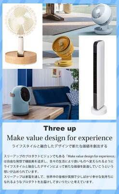 予めご了承くださいませ商品 スリーアップ 衣類乾燥機付3Dサーキュレーター「ヒート&クール」 HC-T1906 サイズ 幅235×奥行235×高さ340mm 質量 約3.1kg 材質 ABS 風量切り替え 3段階調節 ※温風モード使用時は1時段階 左右自動首振り 約60° 上下自動首振り 約30〜40° ※上下(手動:0°・20°・40°・60°で固定、 自動:手動の固定位置から30〜40°の範囲で可動) 性能・備考 OFFタイマー:1・2・4時間 自動オフ機能:8時間(温風モード時) リズムモード、おやすみモード 付属品:リモコン、取扱説明書(保証書付き(1年間)) 生産 - 備考 夏は涼しく、冬は暖かく、オールシーズン使える上下/左右自動首振り機能を搭載した衣類乾燥モード付きサーキュレーターです。